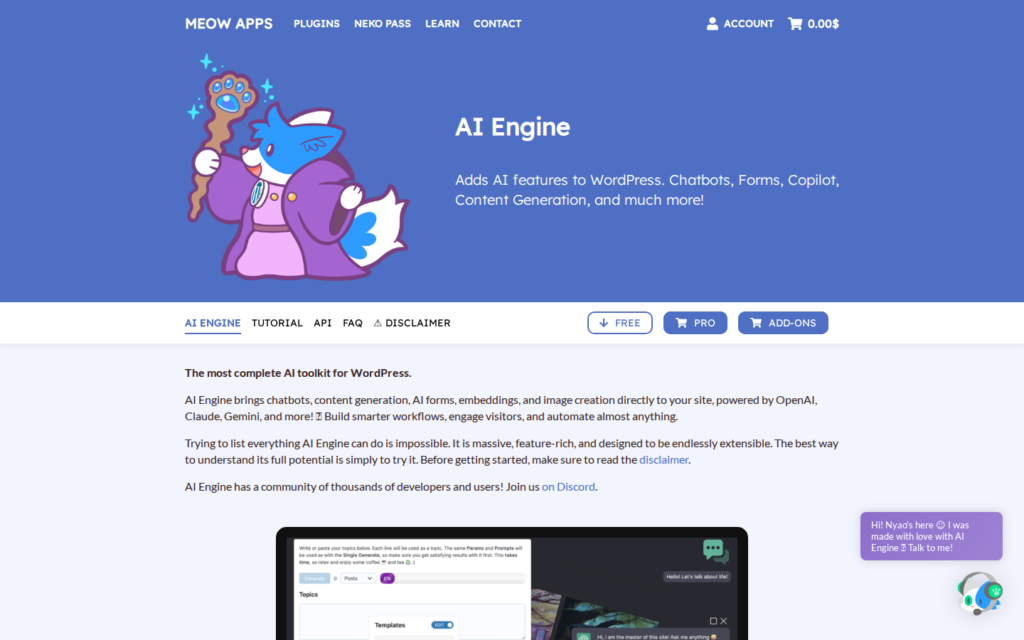 AI Engine is impressive on paper. With 100K+ active installs, it’s one of the most widely used AI plugins for WordPress. It supports OpenAI, Claude, Gemini, Mistral, Perplexity, and OpenRouter — basically every major AI provider.