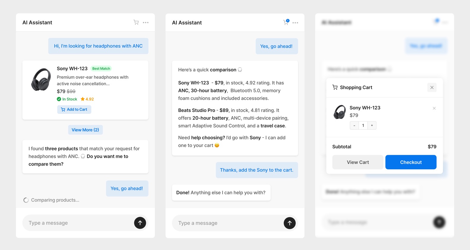- Full WooCommerce integration – Displays product cards directly in chat, filters by price and ratings, checks stock availability. Running an online store? We have a dedicated WooCommerce chatbot comparison with e-commerce specific features.