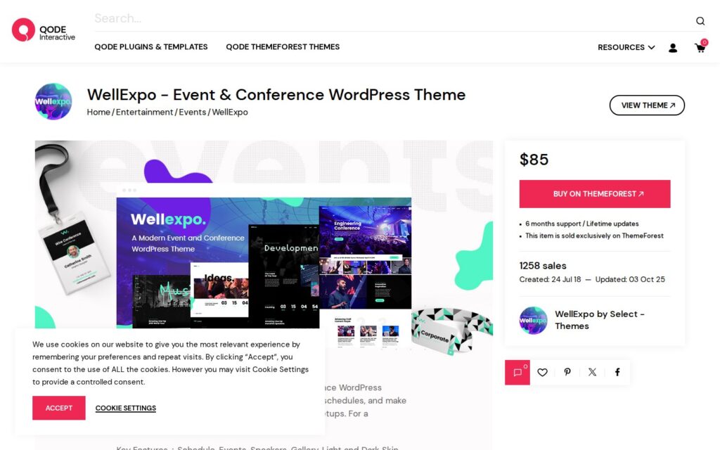 WellExpo is visually striking with modern animations, bold typography, and eye-catching layouts perfect for music festivals or creative events. Bold colors and smooth animations make events feel exciting. Revolution Slider creates cinematic homepage heroes. The design-heavy approach requires careful optimization for load times.