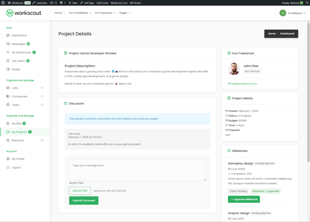 Workreap supports both fixed-price projects and hourly billing. The milestone management system lets employers break large projects into smaller deliverables, which is great for managing complex freelance work.
