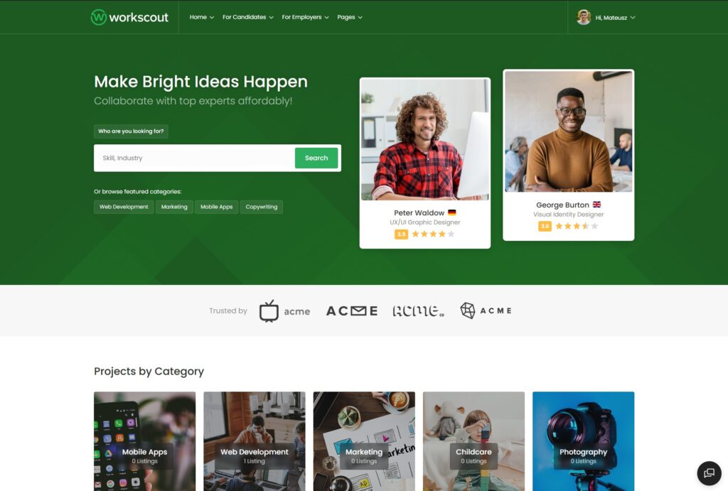 WorkScout is hands down the most versatile option if you want both a traditional job board AND a freelance marketplace in one package. Think of it as Indeed meets Fiverr.