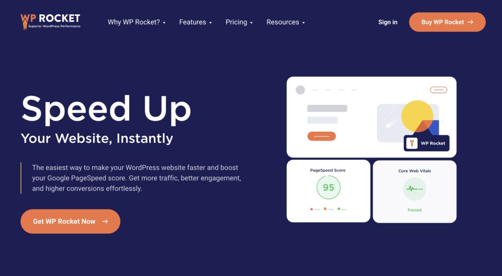 • Cons: no free plan, smaller ecosystem than WP Rocket