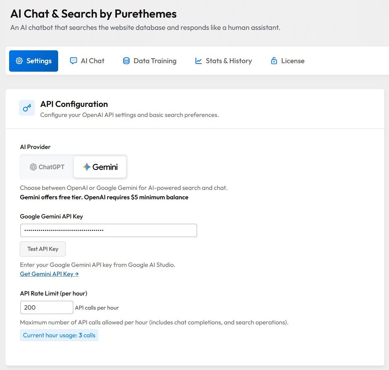 With a one-time payment plugin like AI Chat & Search Pro ($59), your only ongoing cost is API usage. For most sites, that’s $5-20/month. High-traffic sites with thousands of conversations might see $30-50/month. Still cheaper than subscription alternatives.