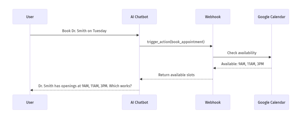 Example: User asks “What times are available for Dr. Smith on Tuesday?”