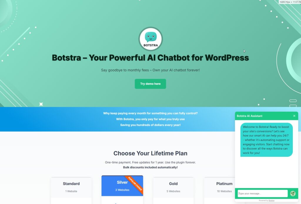 The WordPress chatbot market isn’t exclusively subscription-based. These one-time payment alternatives are legitimate, actively maintained, and can save you serious money over time.