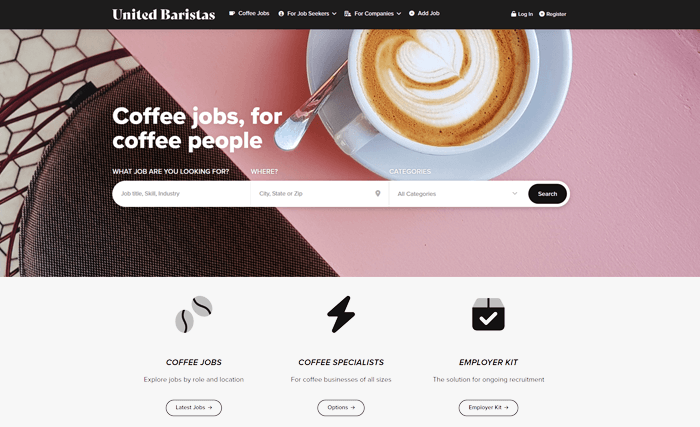Workscout has allowed United Baristas to better connect our community with coffee industry jobs. It works out of the box and has been easy for the team to customise to reflect our brand and user requirements.